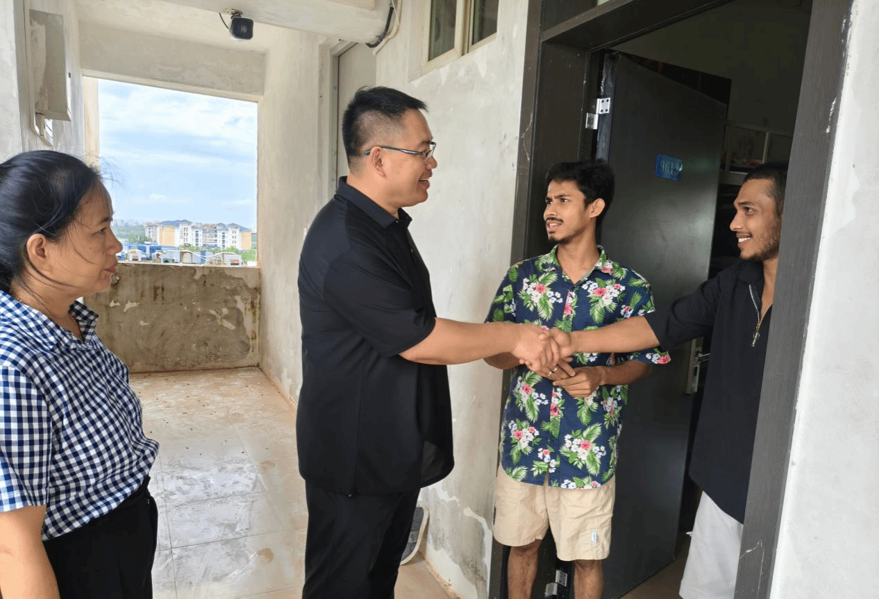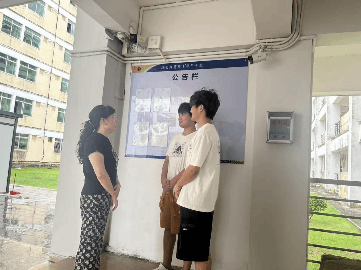随后,学院辅导员、班主任在党总支书记于勇的带领下组成专项走访小组,排查学生宿舍安全情况。走访中,工作人员重点检查宿舍门窗玻璃是否破损、阳台护栏是否牢固、电路开关及电器使用是否正常,细致询问学生台风期间生活需求及安全状况,叮嘱学生注意雨后用电、防滑安全,及时反馈宿舍设施故障。