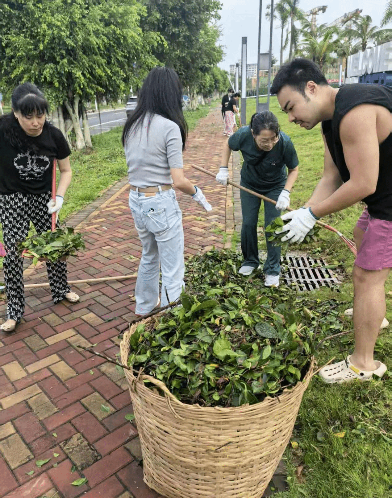 ▲台风灾后齐心清扫校园、宿舍走访排查隐患、暖心关怀学生,每一步都是护校园安稳、暖师生心间的行动