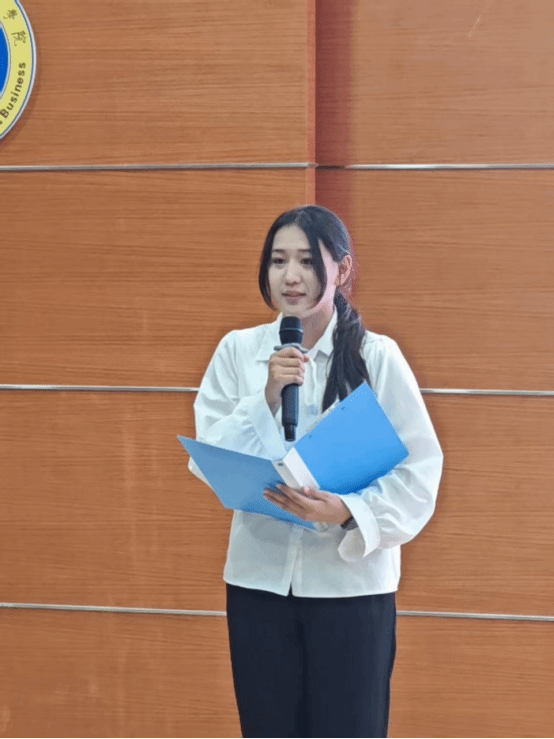 由学生代表冯雅汝分享了自己参与志愿服务的宝贵经历和深刻感悟,她引用雷锋名言 “一滴水只有放进大海里,才永远不会干涸,一个人只有当他把自己与集体事业融合在一起的时候,才最有力量”,并以 “大海因暗礁阻挡才激得起美丽浪花” 类比,强调个体在集体磨炼中才能不断成长,呼吁大家在志愿服务中凝聚力量,成长为更优秀的青年志愿者。