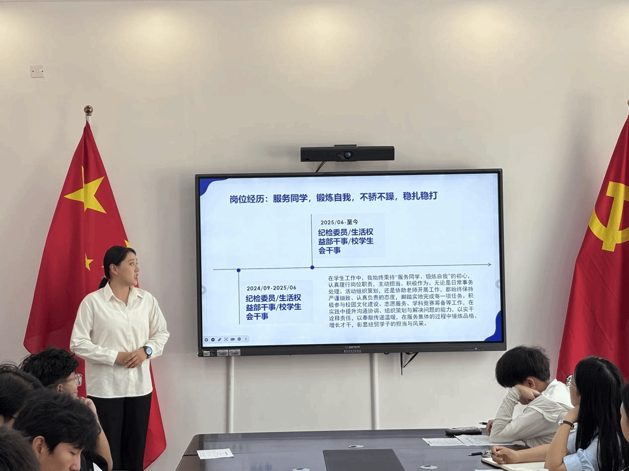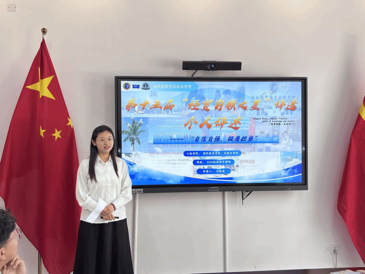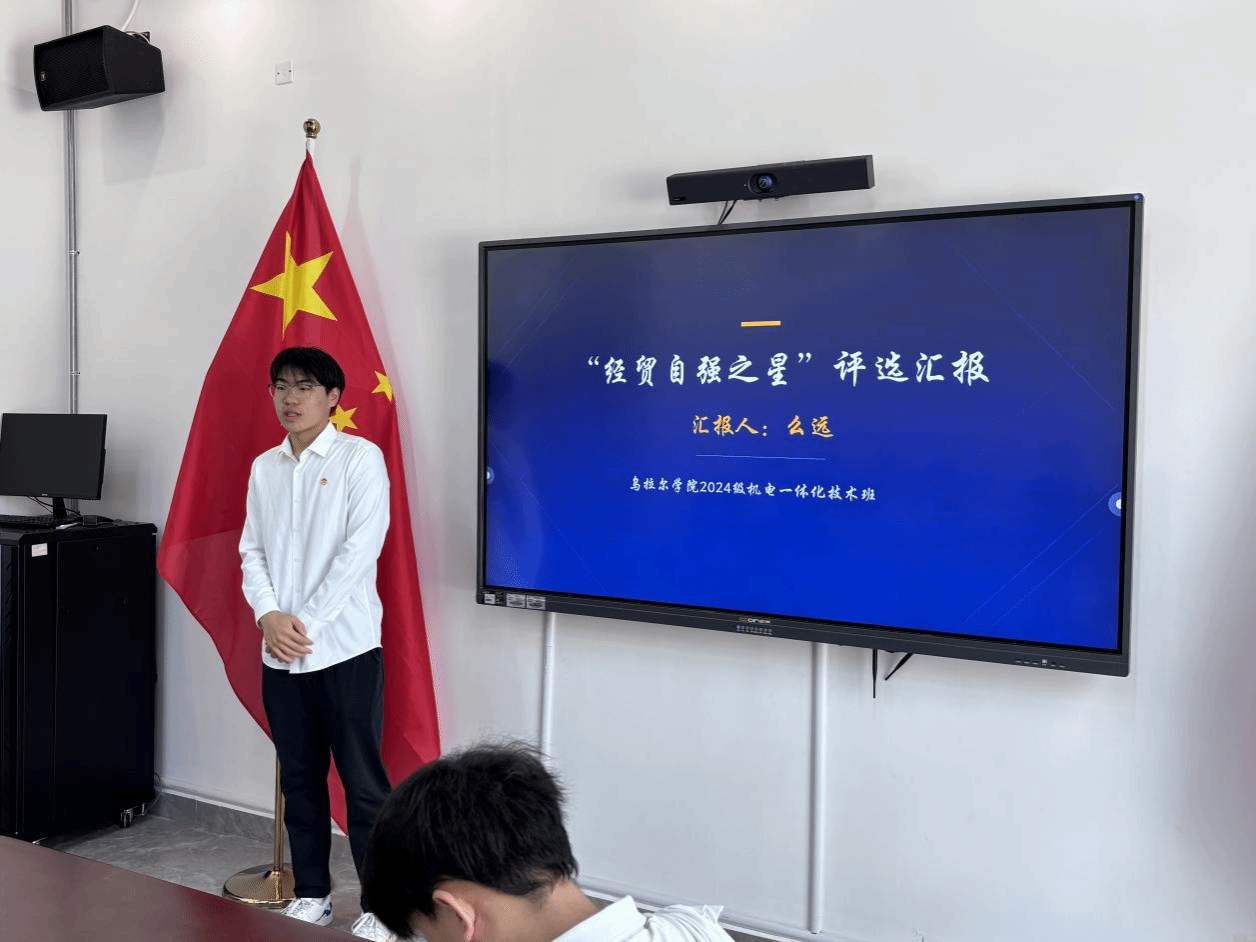 为深入落实立德树人根本任务,选树励志典型、强化榜样引领,乌拉尔学院近日举办 “经贸自强之星” 评选活动。学院副书记周书妍、学工办主任陈青云、全体辅导员及学生代表出席本次活动。