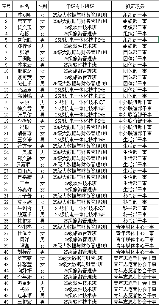 乌拉尔学院第六届团学青干事录取名单揭晓